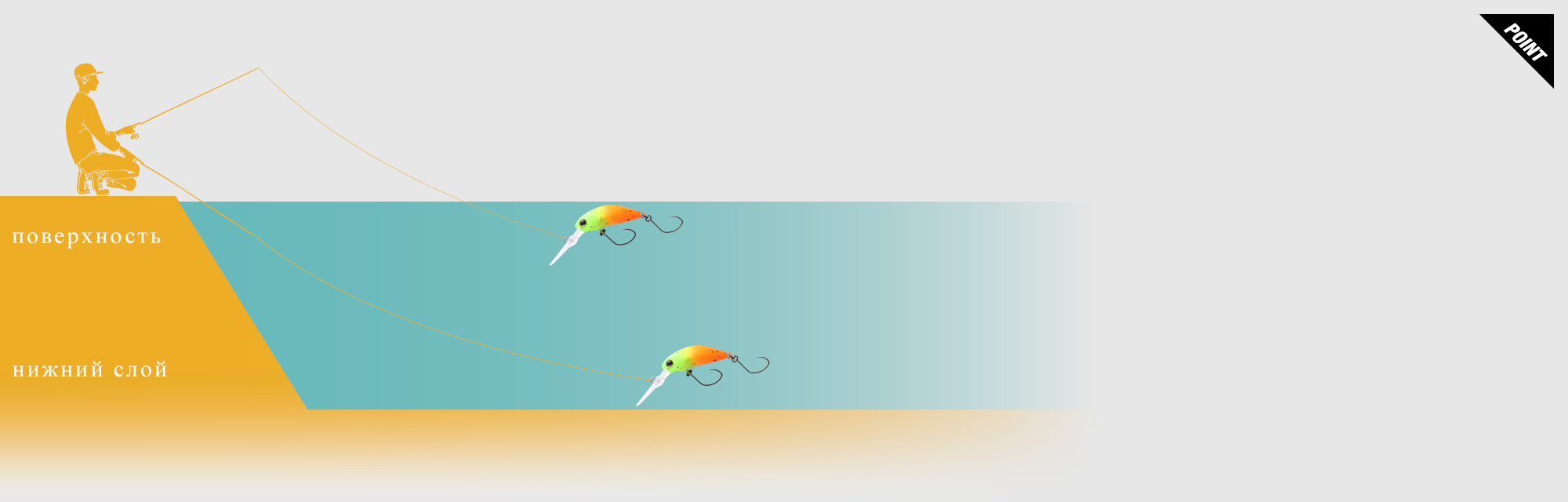 Вы легко можете контролировать диапазон глубин от поверхностного слоя до приблизительных 1,2 м, просто поднимая и опуская удилище.